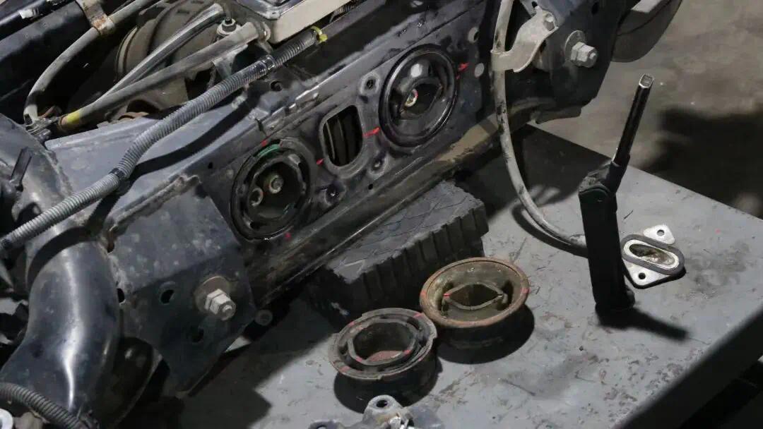 修到这里,大家肯定就明白了,前悬挂我们修了一个遍,唯独这个机脚没换,因为这机脚车主来咱们厂之前换的,所以我们就没动。