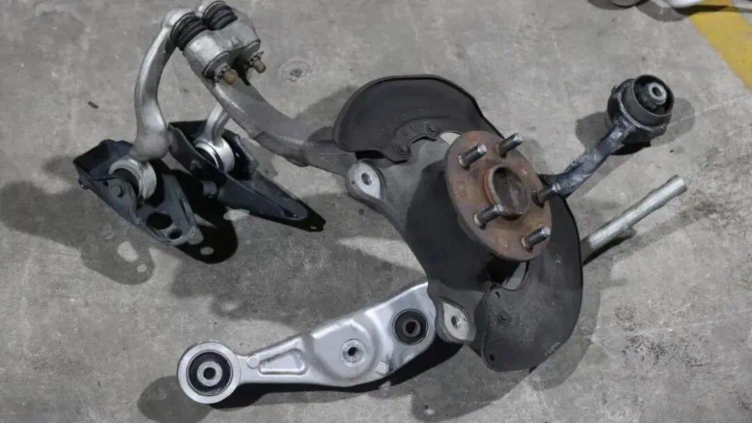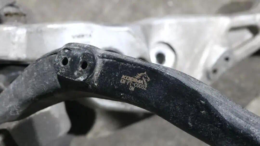 但是前悬挂修完还有跳动,不得不怀疑这机脚了,所以我们订了原厂机脚回来对比,一对比就看出差别了,车主之前装的是高仿机脚!